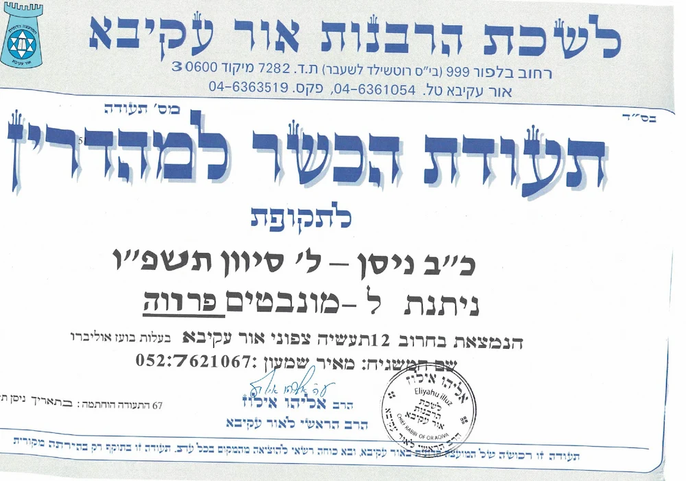 תעודת כשרות תשפ"ו